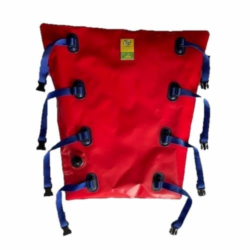 Face bleue en contact avec la victime, face rouge renforcée pour la pose au sol.