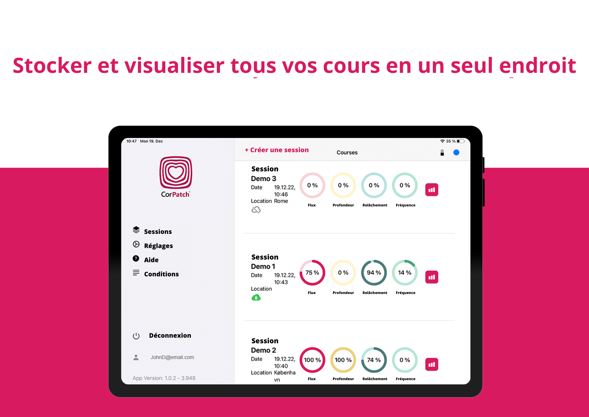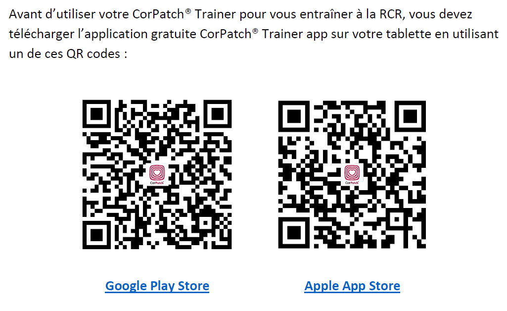 Fonctionnement uniquement avec l’application CorPatch® Trainer.