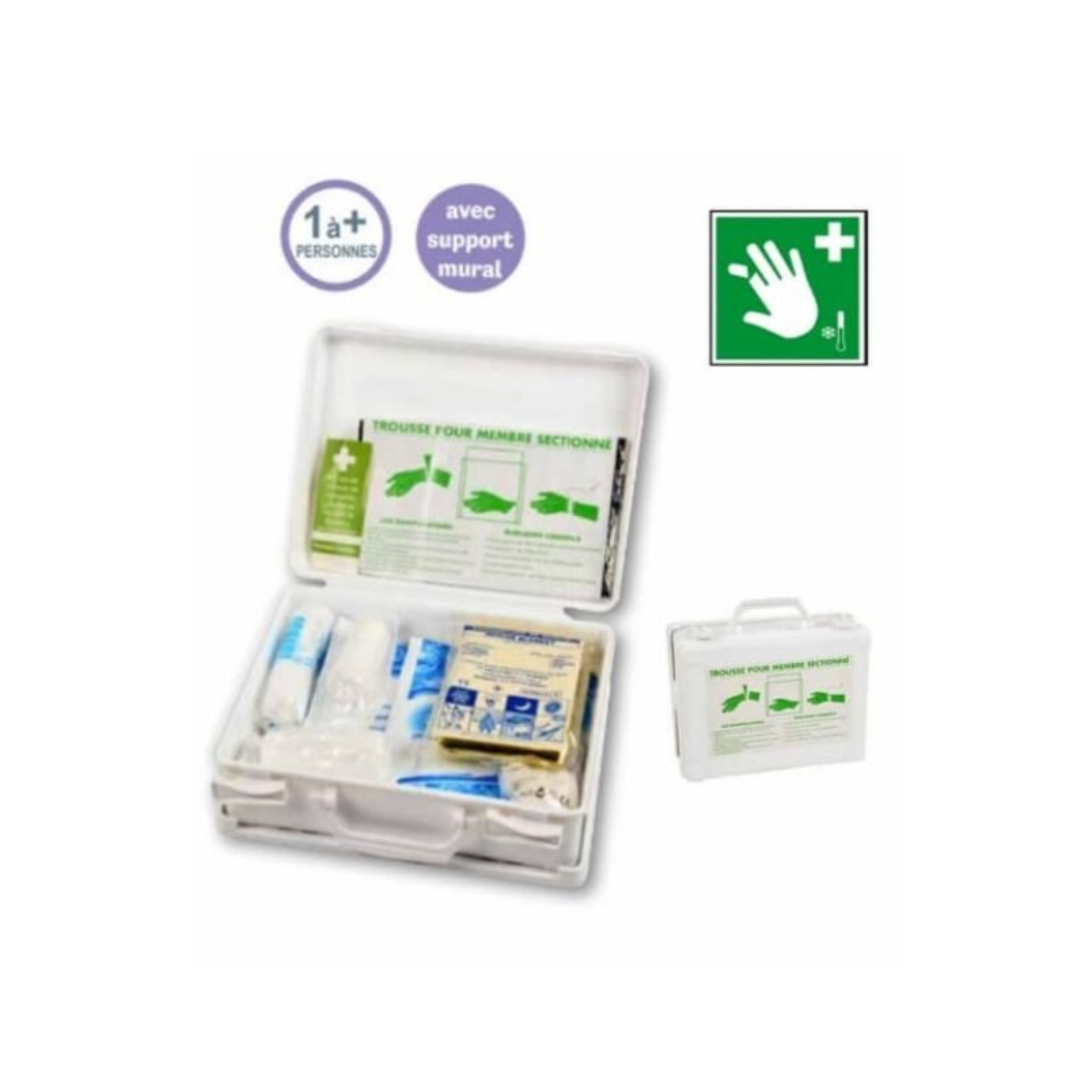 Trousse destinée uniquement à la première intervention d’urgence en cas de membre sectionné : ne remplace pas une prise en charge médicale spécialisée.